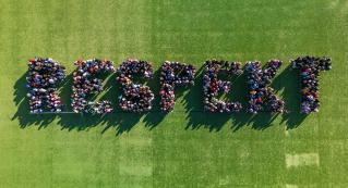 Alle Schüler:innen und LPs der Schule Wangental bilden das Wort Respekt (siehe Foto).